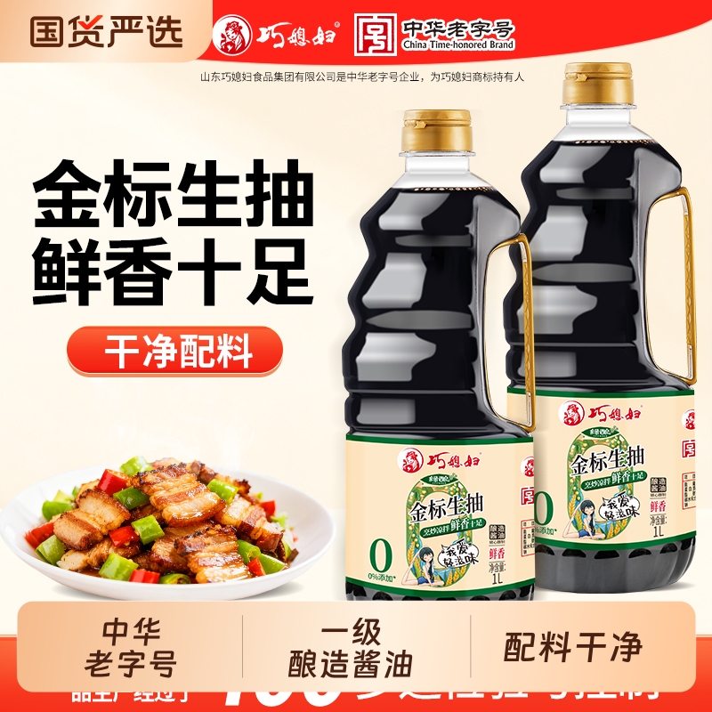 巧媳妇0添加金标生抽1L桶酿造酱油家用料酒鸡精调味料鲜味食用