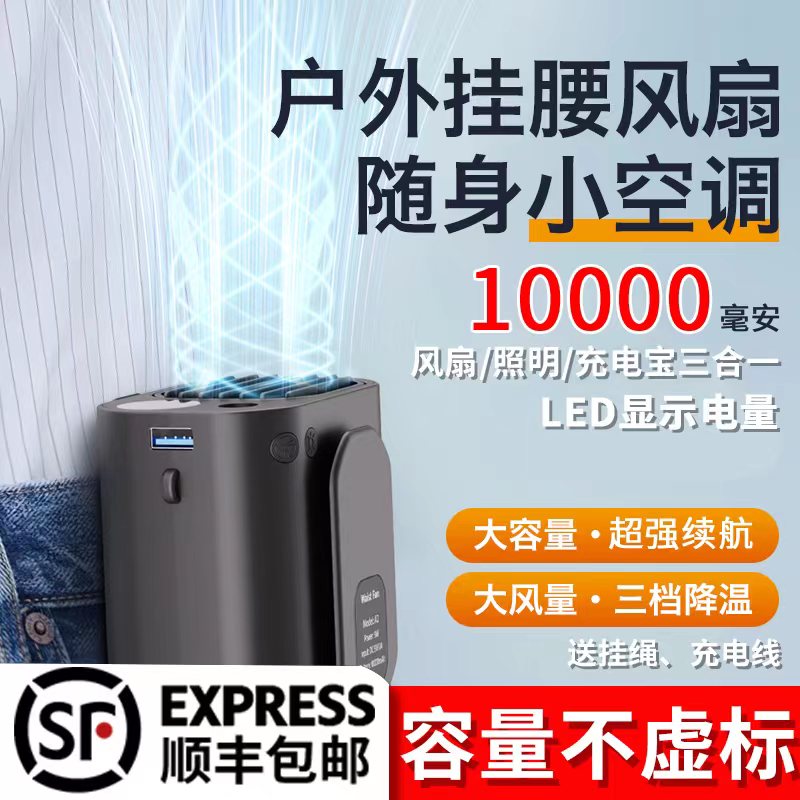 挂腰风扇便携式工l地随身空调制冷静音小风扇户外露营降温神器长
