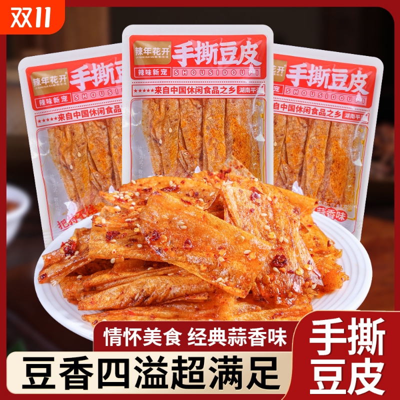 湖南特产散装手撕豆皮辣年花开手工香脆豆皮豆丝辣条零食年货