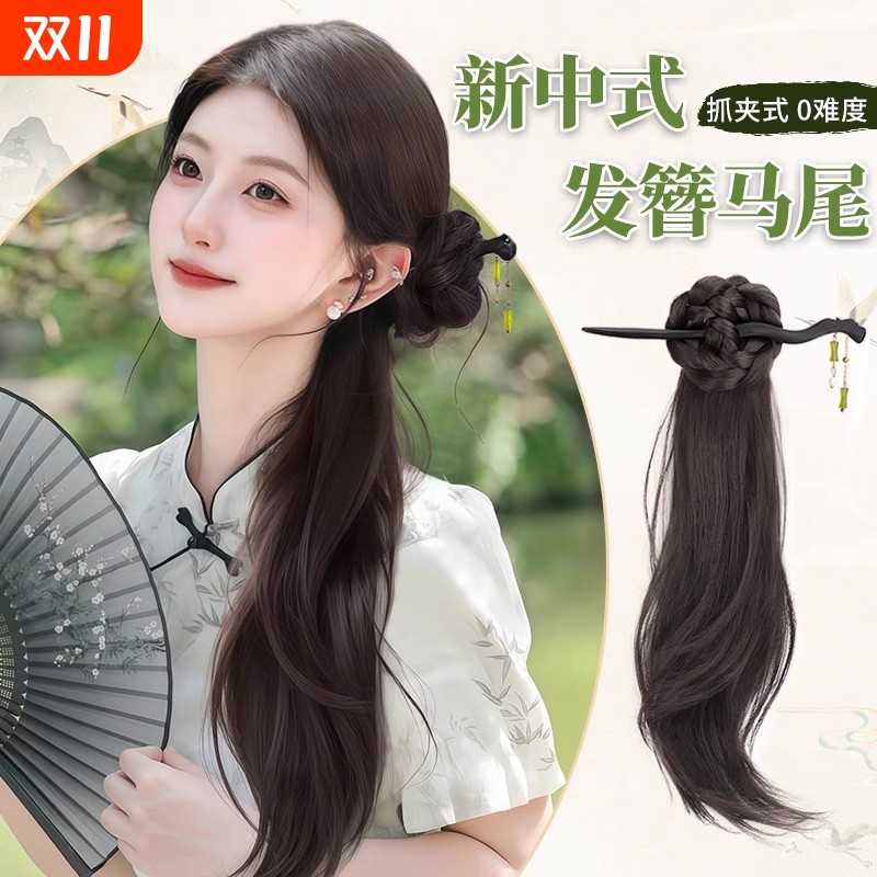 假发辫子女仿真发簪新中式长发侧边抓夹发饰古风汉服旗袍侧马尾辫