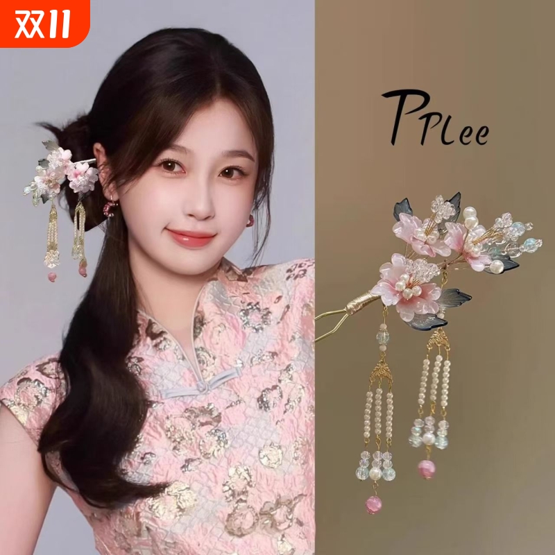 酥荣棠春~虞书欣同款新中式花朵流苏发簪旗袍汉服步摇发钗旅行簪