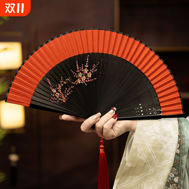 古风扇子印花长木柄儿童成人团扇搭配汉服旗袍舞蹈走秀拍照表演扇