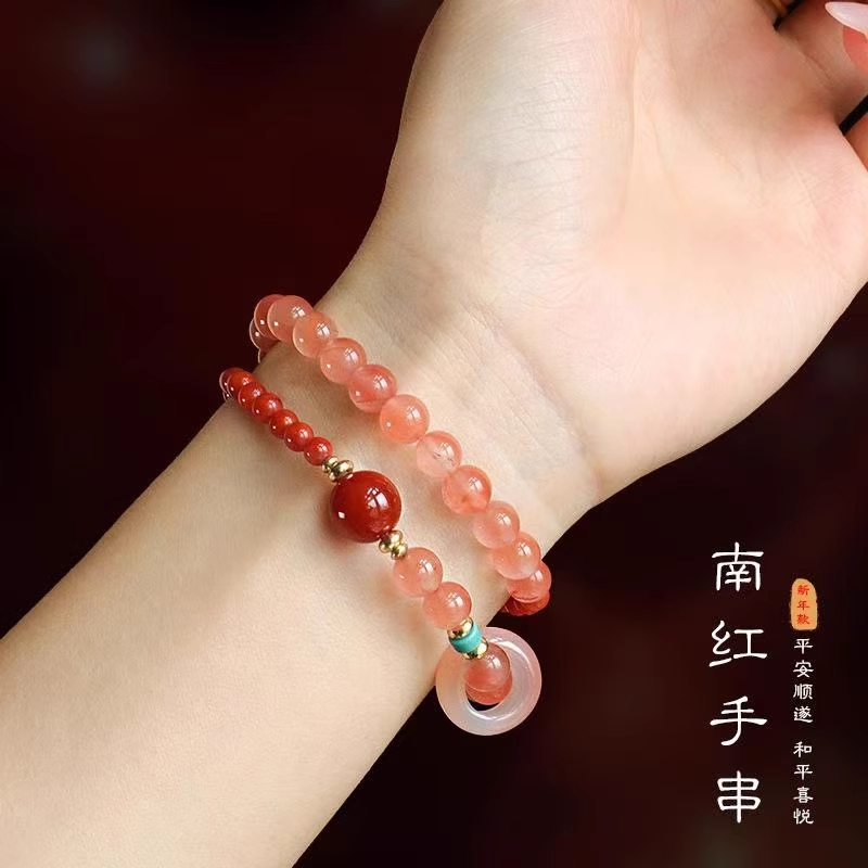 低含朱砂手串紫金砂本命年手链男女转运饰品平安紫砂晶体佩戴辰砂