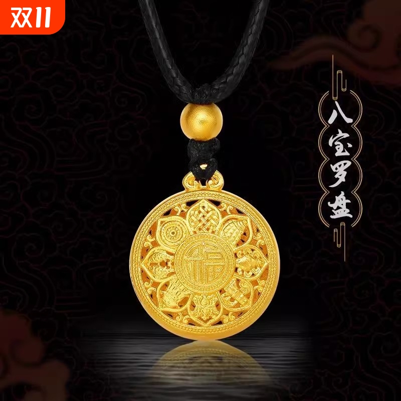 古法吉祥八宝罗盘转运项链黄金色正品福字莲花镂空男女款沙金吊坠