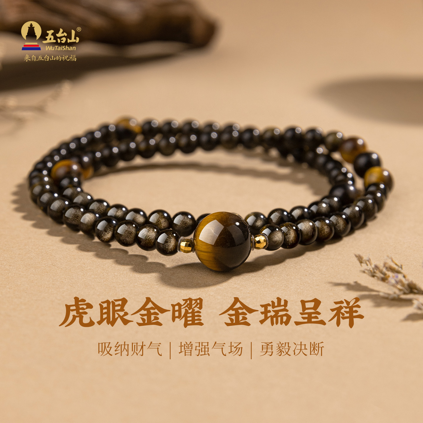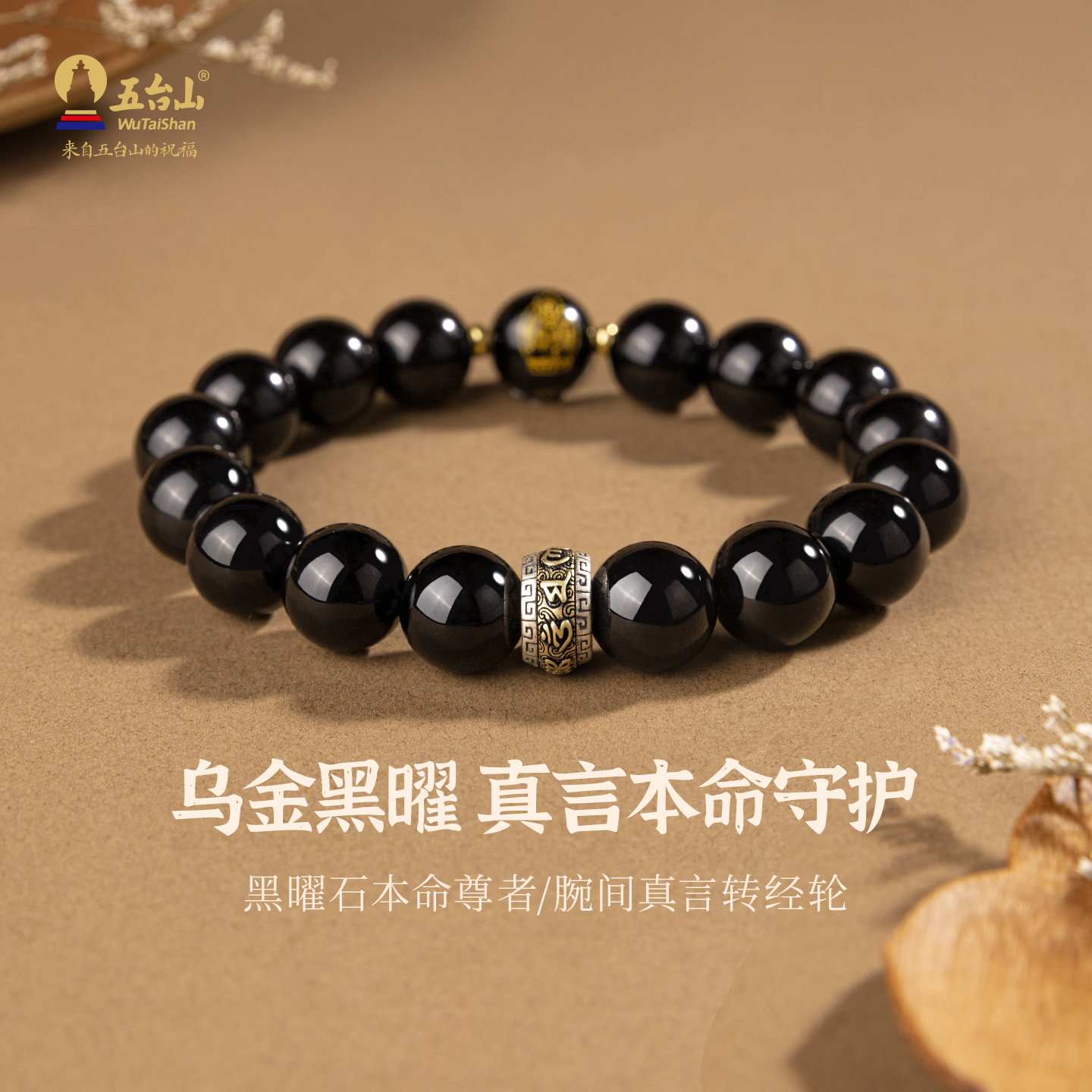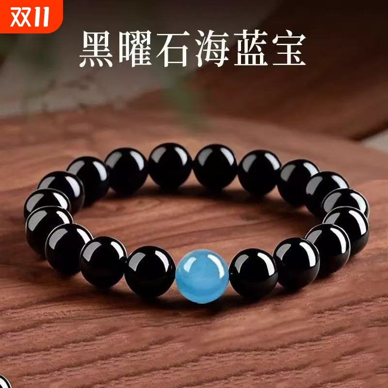 黑曜石手串海蓝宝转运珠女手链男女款海蓝宝缺水补水节日礼物上岸