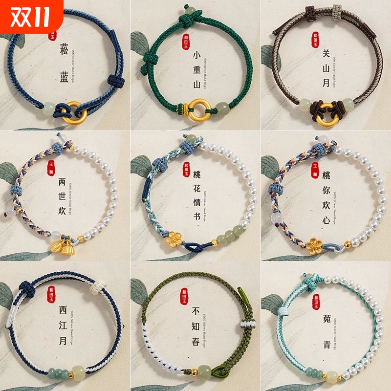 原创平安扣足银999和田玉手绳新中式国潮编织手饰手链纯银转运珠