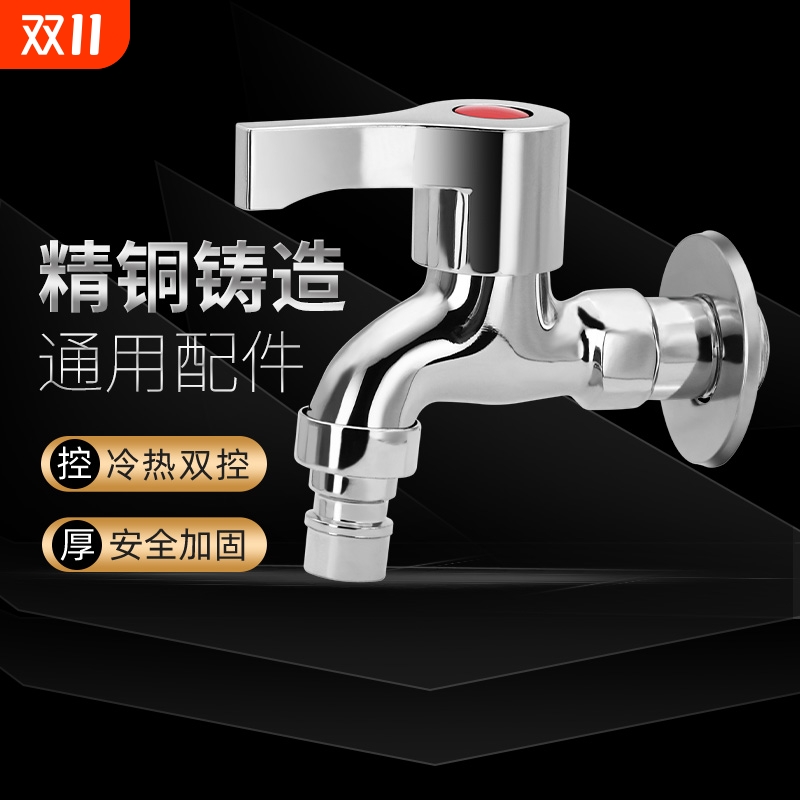 洗衣机拖把池加长水龙头卫生间铜一进二出自动止水阳台螺纹水阀