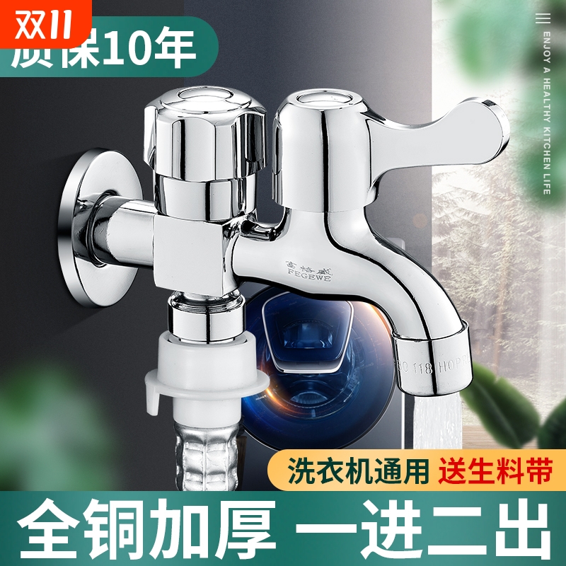 洗衣机水龙头一分二接头专用一进二出三通双头双出水家用全铜加长