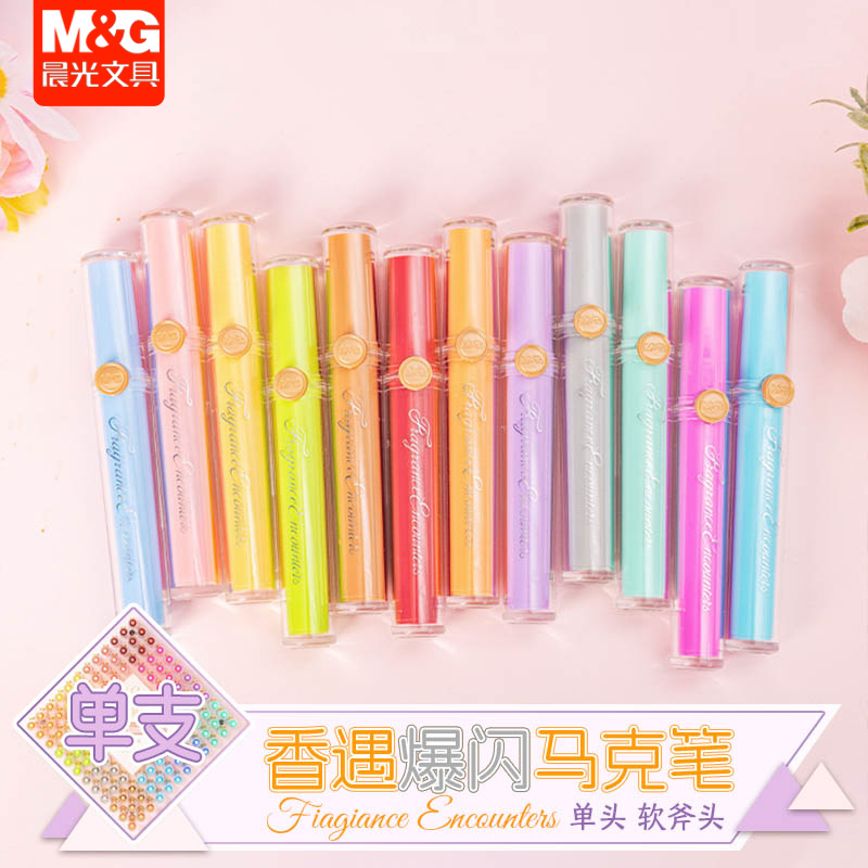 晨光香遇爆闪香味荧光笔记号笔学生做笔记划重点书绘图填色马克笔