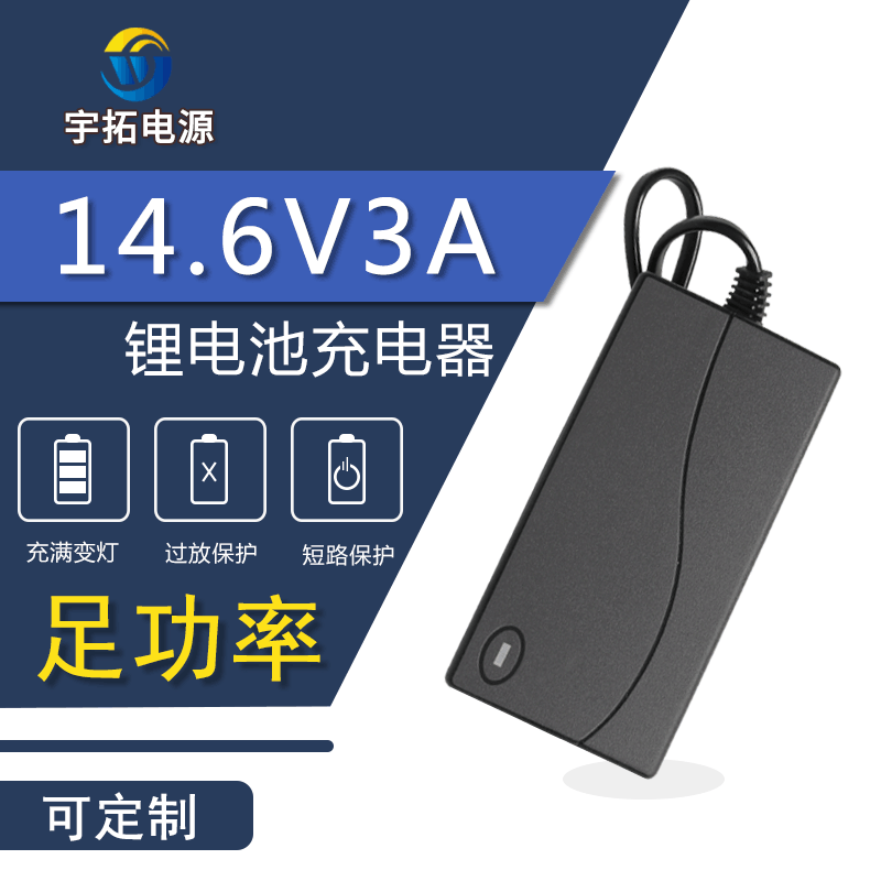 14.6V3A锂电池充电器3.2V磷酸铁锂组4串12.8V铅酸蓄