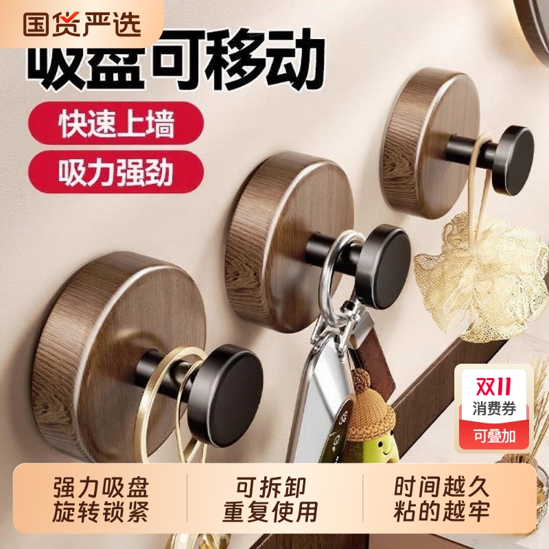 【稳如老狗】吸盘胡桃木粘钩挂钩