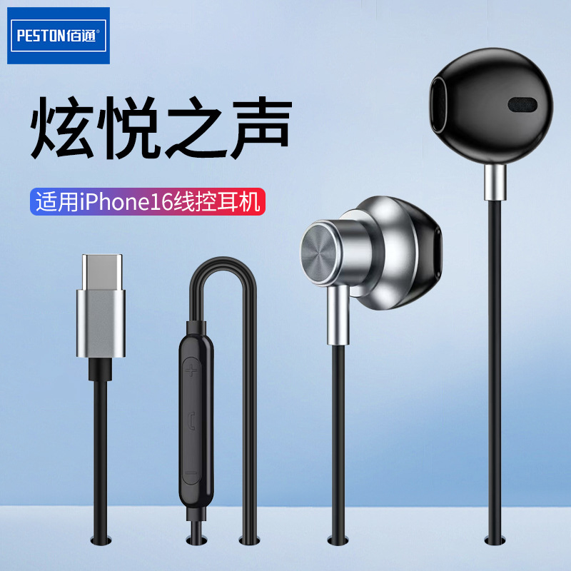TYPE-C扁有线数字耳机适用typec入耳式重低音线控耳机X2