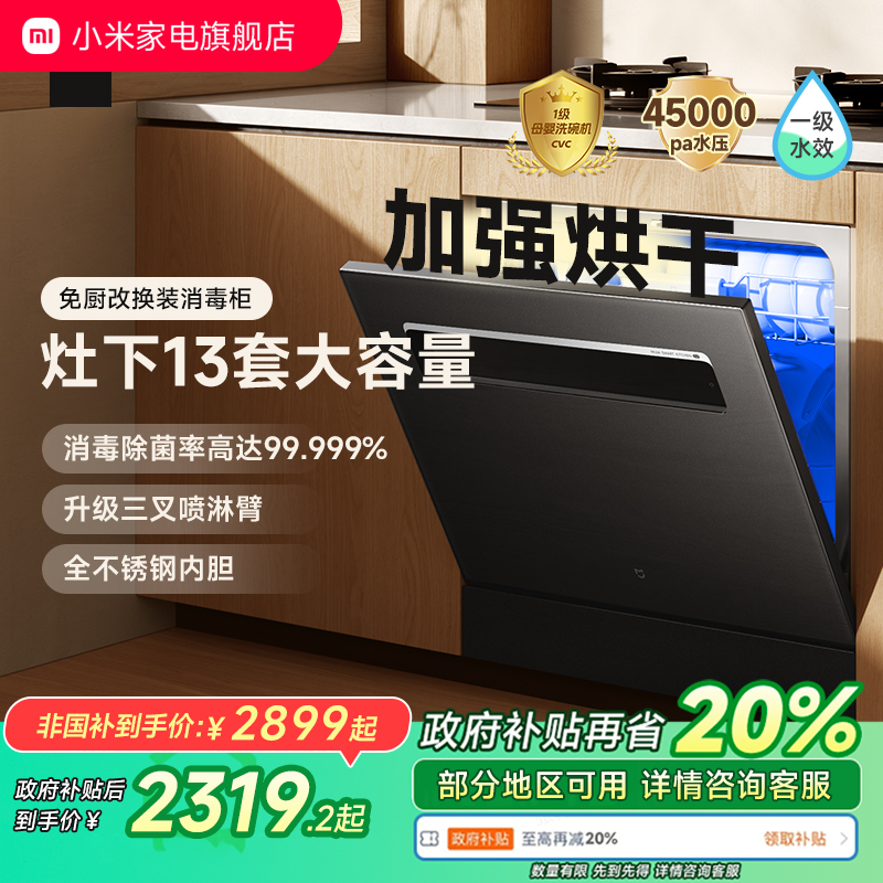 小米米家洗碗机家用13套大容量强烘干灶下嵌入式一级水效双驱变频