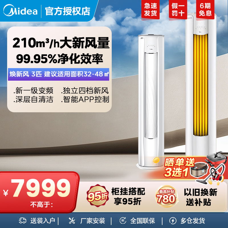 美的换新风3匹柜机一级变频