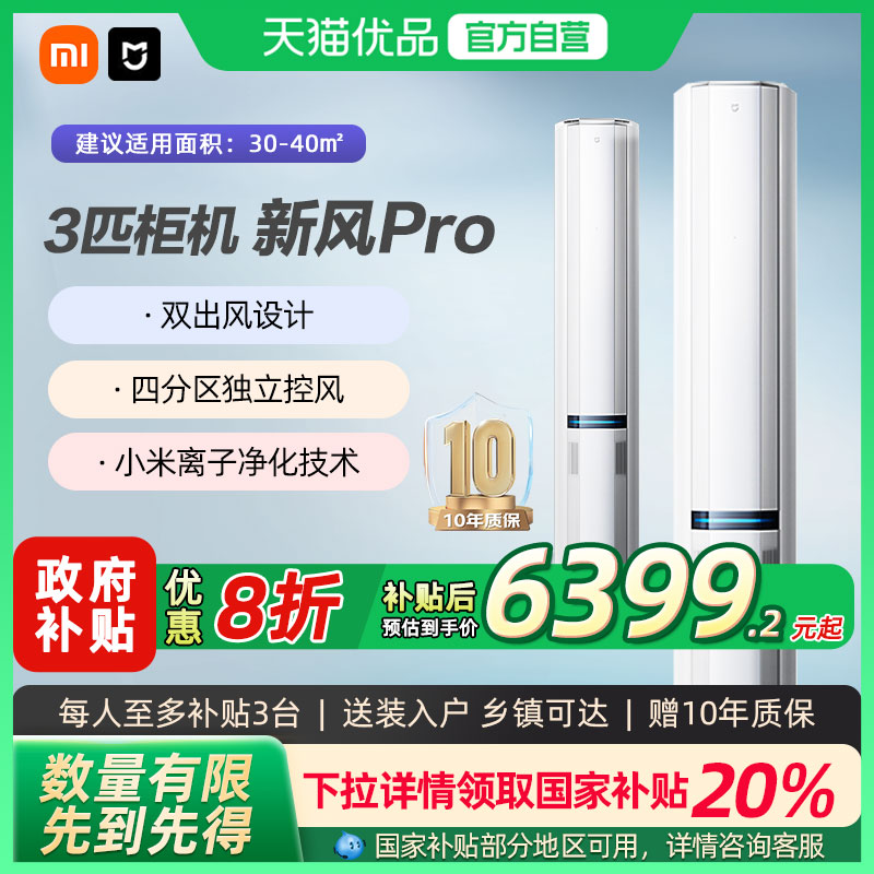 【国补20%】小米米家空调3匹新风Pro超一级能效大新风量立式柜