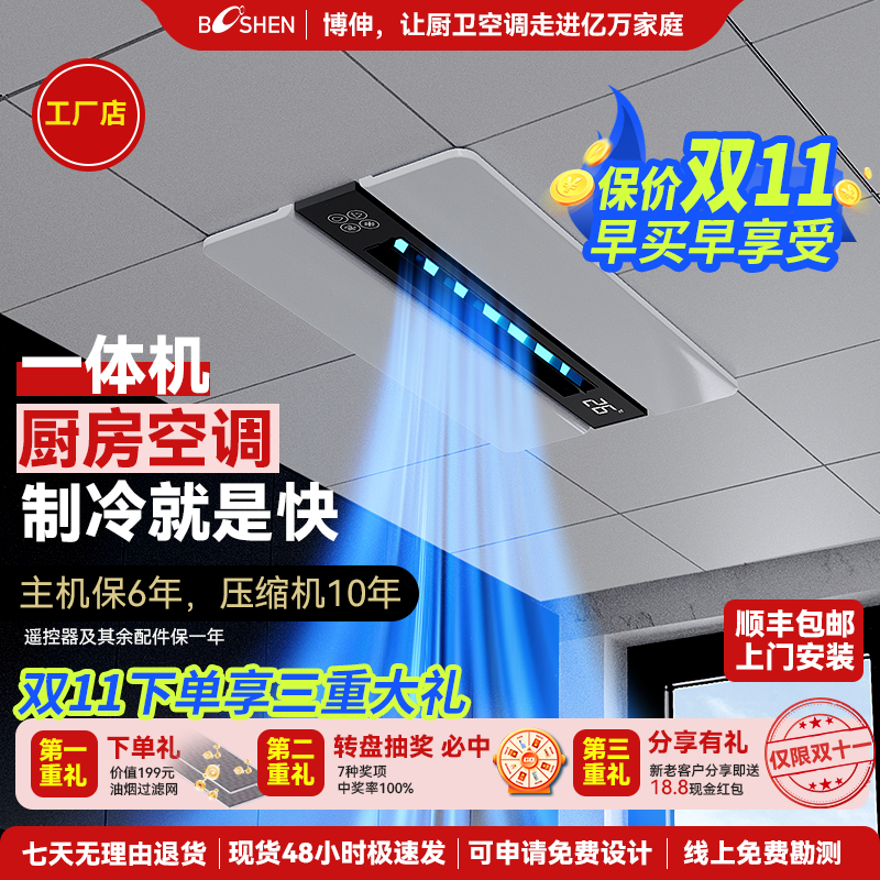 Booshen厨房专用空调酷翼强制冷大冷量嵌入式吊顶一体分体机空