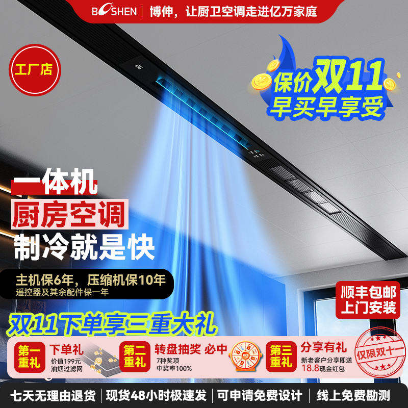 Booshen酷家厨房专用空调家嵌入式吸顶空调线型大冷量单冷防油