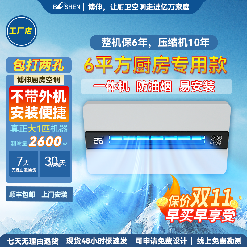 Booshen厨房空调COOL家1.5匹大冷量嵌入一体无外机厨房
