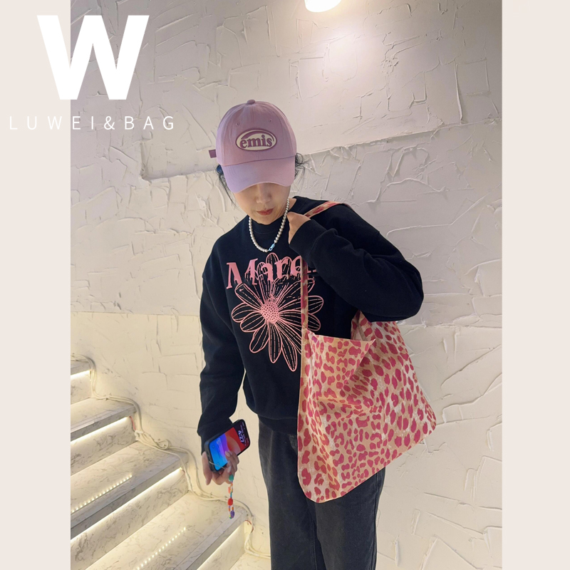 韩国豹纹帆布包松弛感单肩通勤包