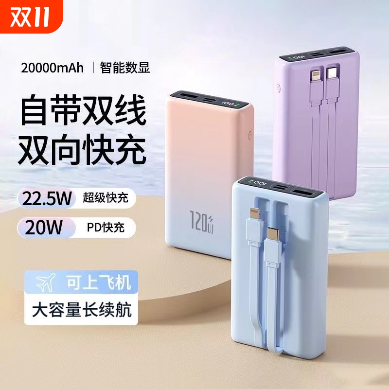 20万毫安超级快充超大容量自带线充电宝8万/16万户外露营直播宿