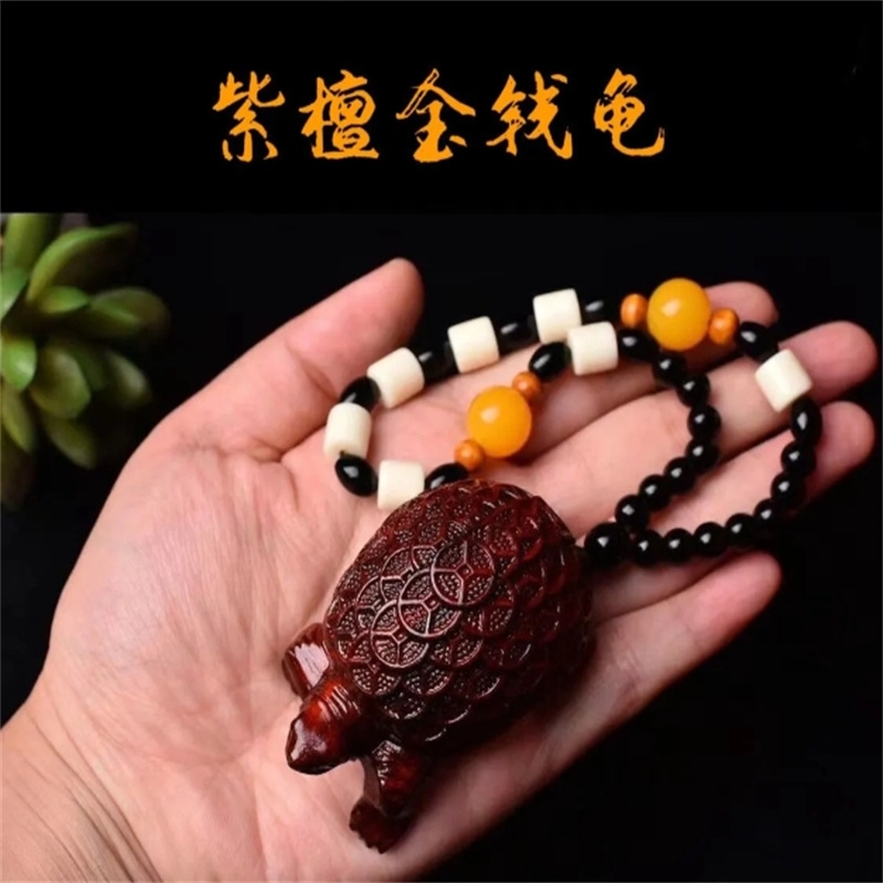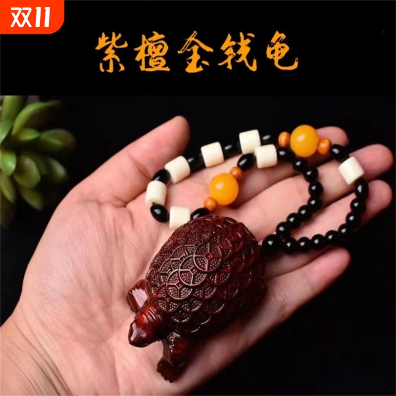 小叶紫檀招财金钱龟车挂长寿乌龟文玩手把件摆件富甲天下木质挂件