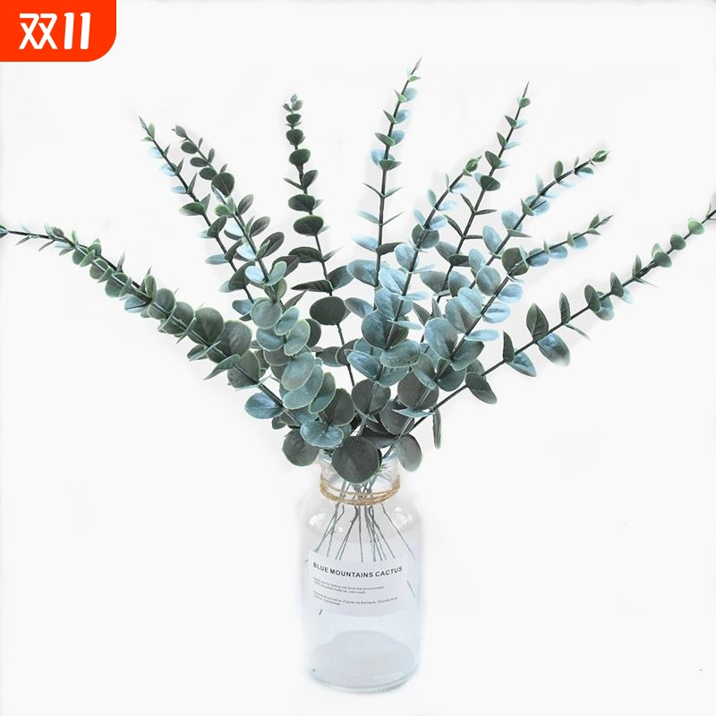 尤加利叶金钱叶枝仿真绿植假花摆件插花北欧风装饰摆放落地现代