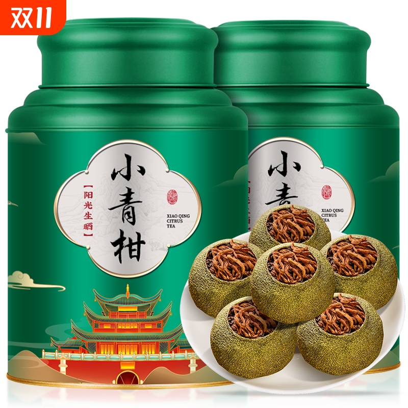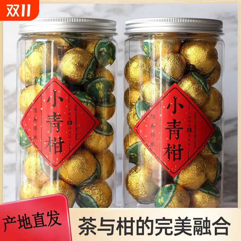 新会小青柑正宗云南陈皮普洱茶熟茶生晒小青桔小柑橘茶叶罐装500g