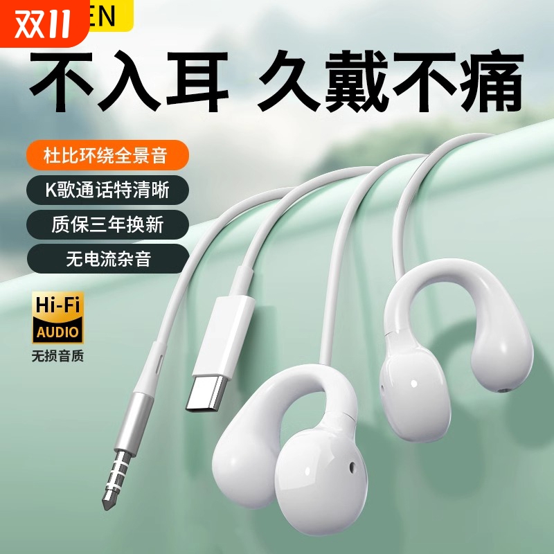 有线耳机夹耳式骨传导久戴不痛typec高音质结实耐用非入耳式圆孔