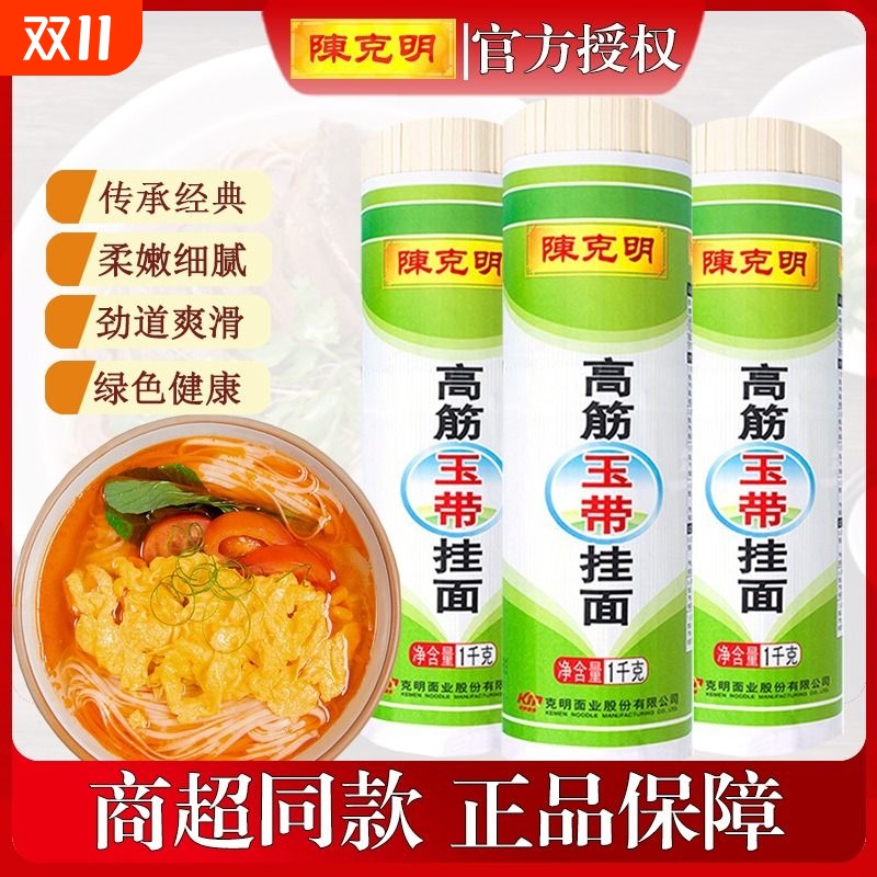 陈克明1kg*2袋高筋玉带挂面面条包邮宽面劲道爽滑整箱早餐拌凉面