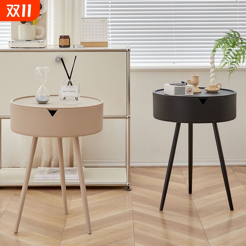 奶油风床头柜现代简约边几小茶几卧室圆形迷你角几新款创意收纳柜