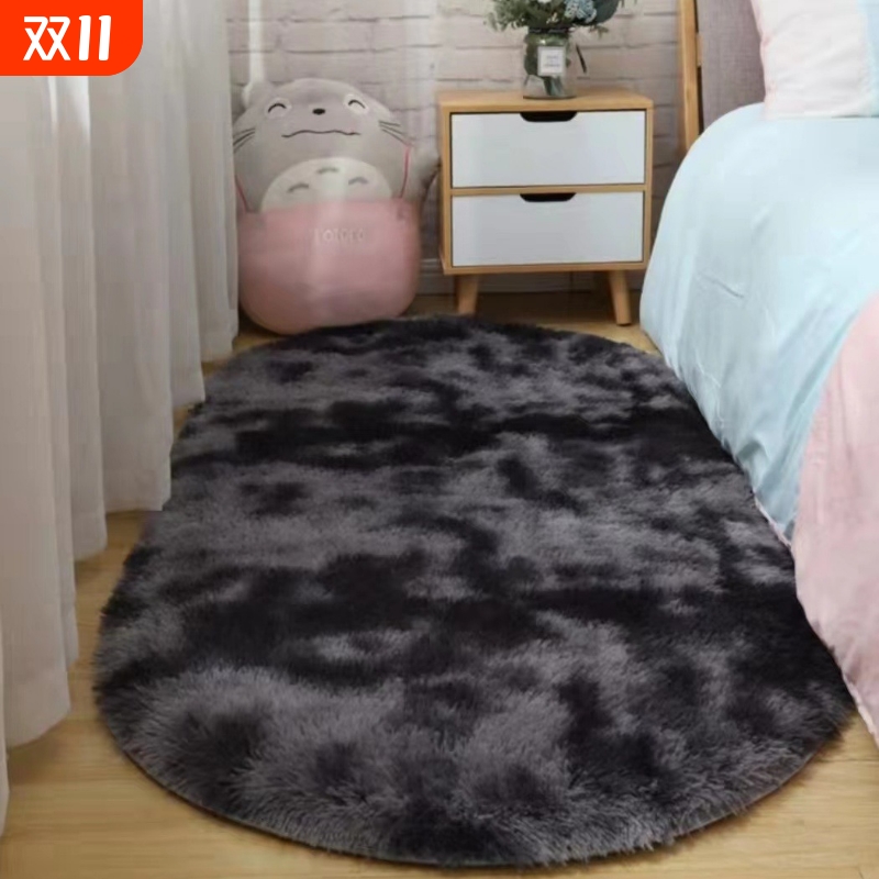 跨境扎染长毛椭圆形床边地毯ins风客厅茶几卧室床边毯ins风家居