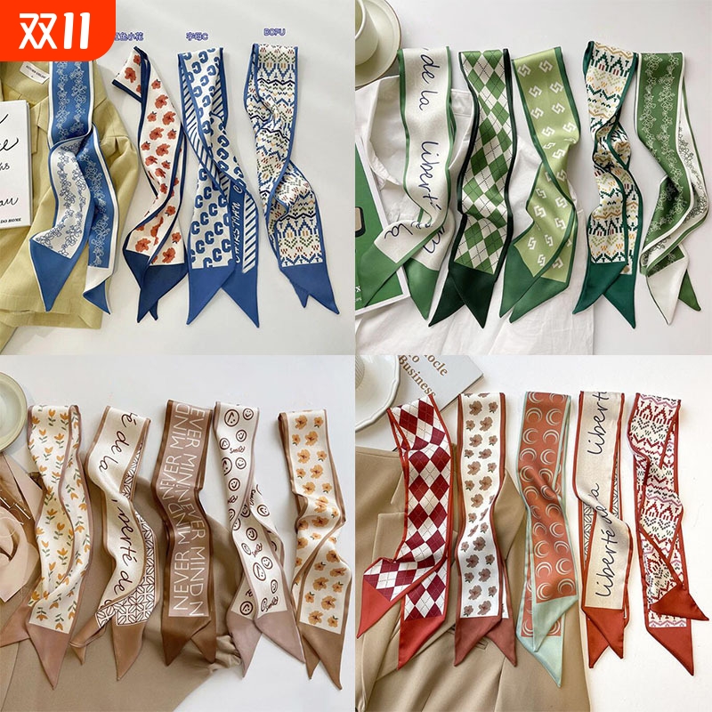 丝巾长条系列丝巾温柔港风长条丝巾双面飘带发带领巾女包包装饰物