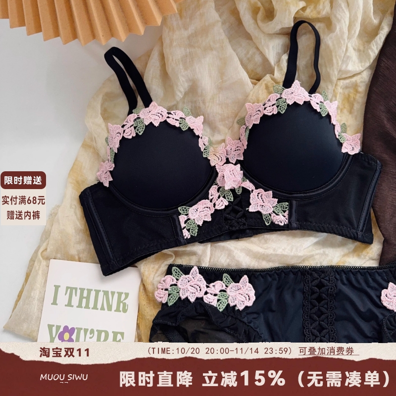 法式刺绣蕾丝内衣女小胸聚拢显大无钢圈性感纯欲风性感文胸罩套装