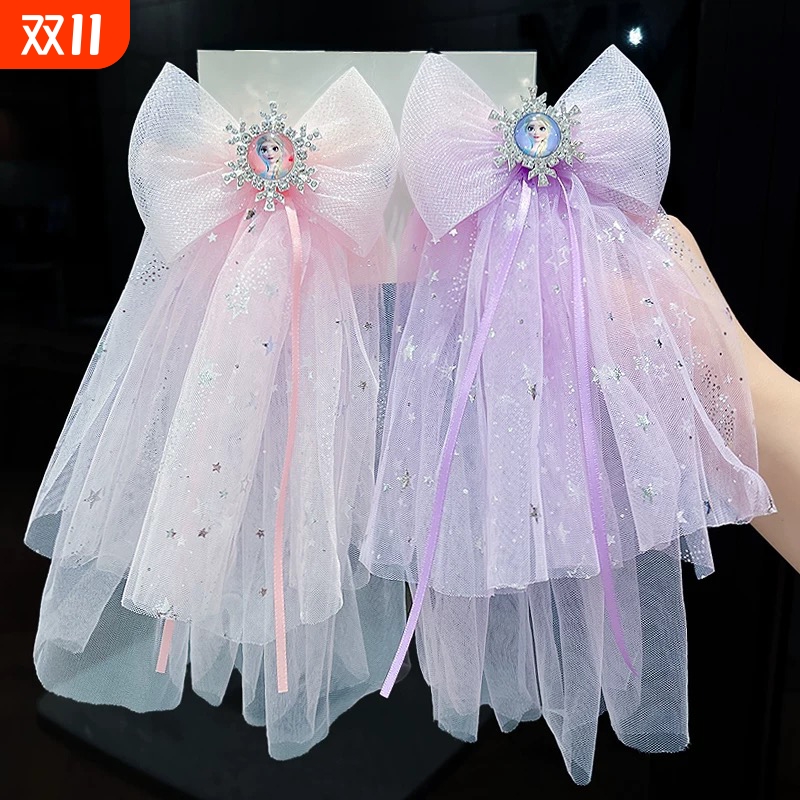 公主蝴蝶结飘纱头纱发夹儿童超仙长款头饰女童宝宝生日头发饰发卡