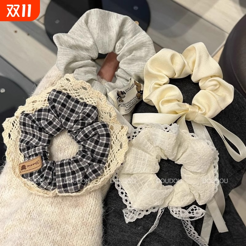 发圈少女心温柔蝴蝶结大肠女高级感粉色丝带蕾丝气质飘带发绳韩系