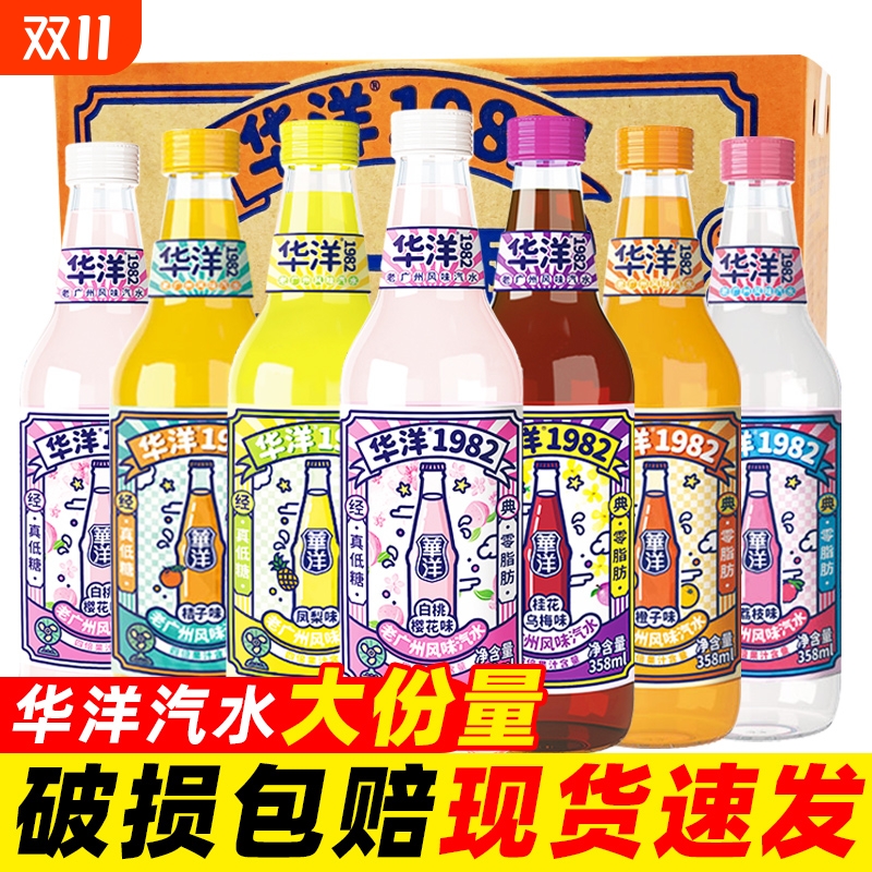 华洋1982果汁汽水358ml果味碳酸饮料真低糖0脂肪玻璃瓶整箱