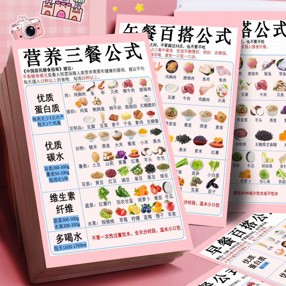 营养三餐公式小卡】12张一日三餐吃出健康好身材低碳饮食食谱参考