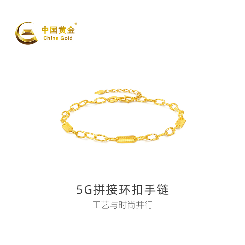 【中国黄金官方店】足金5G拼接环扣手链时尚简约气质新品百搭首饰