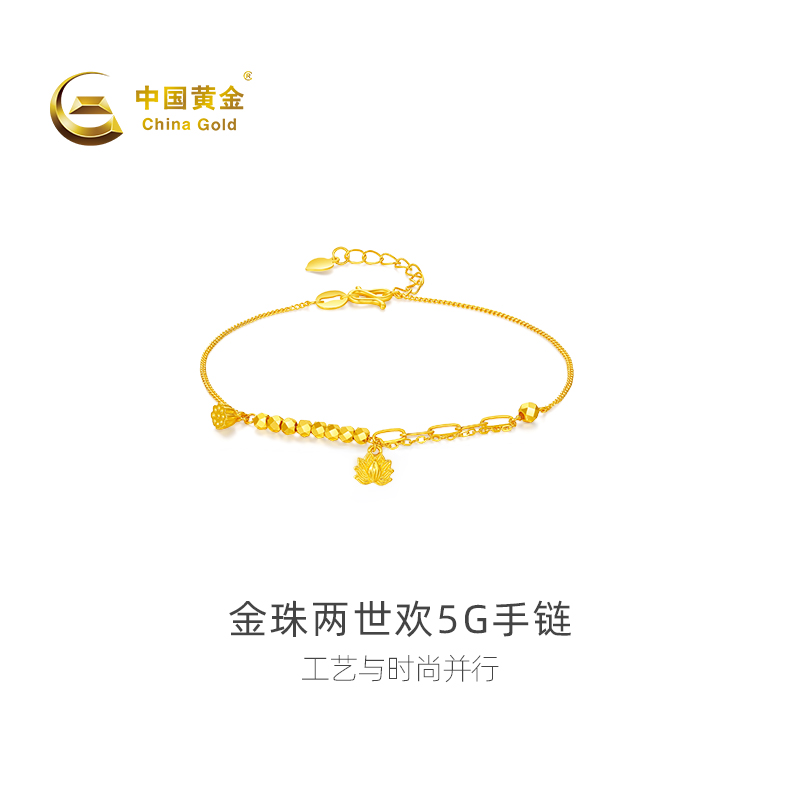 【中国黄金官方店】足金金珠两世欢5G手链时尚简约气质首饰新品