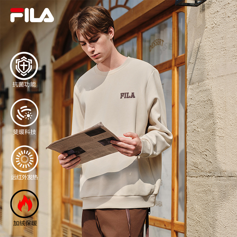 加绒|FILA斐乐套头卫衣男士宽松经典圆领长袖基础休闲运动服上衣