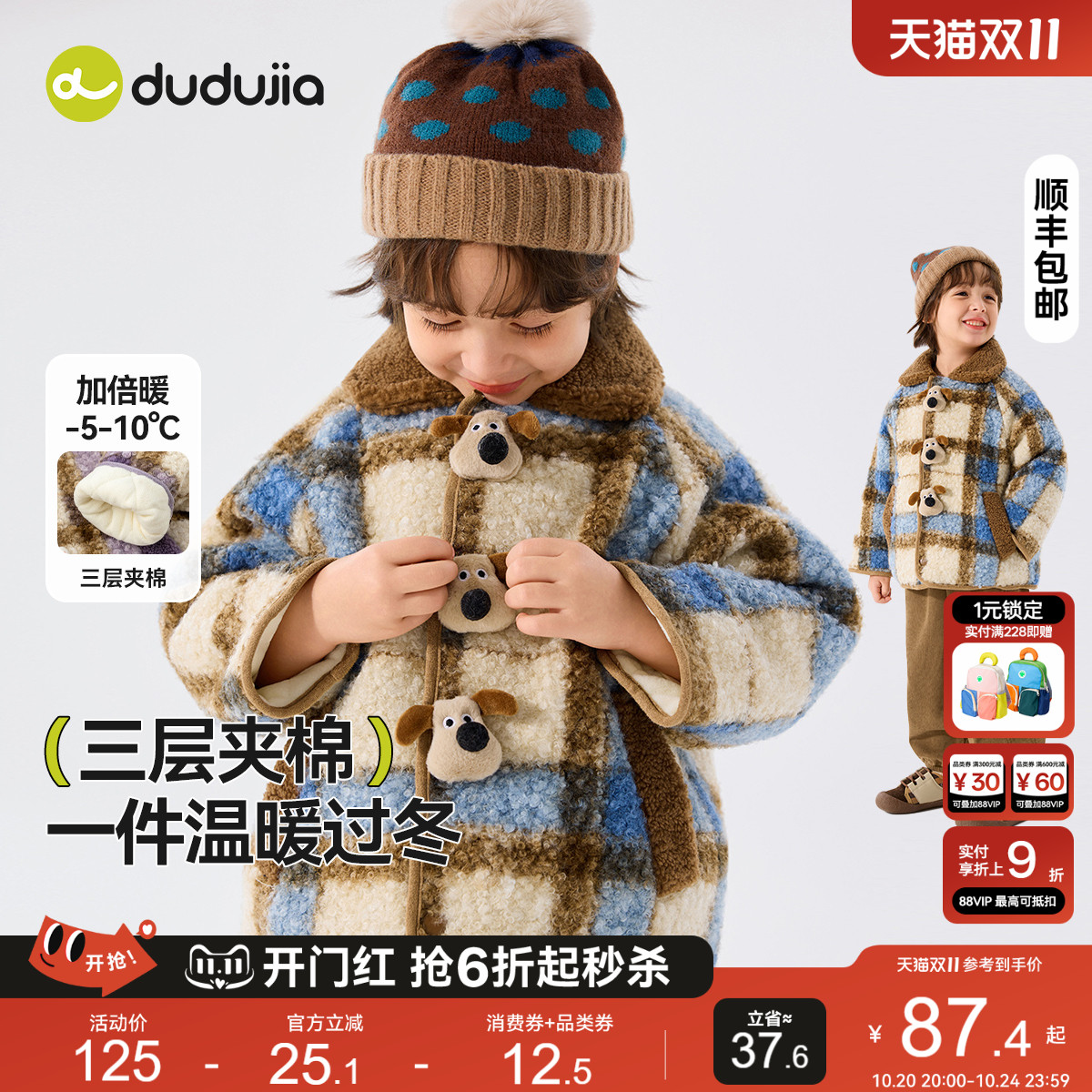 嘟嘟家儿童外套男童夹棉上衣宝宝大衣秋冬季加厚女童加绒格子冬装