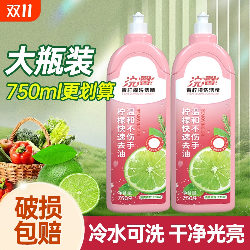 750ml大瓶装青柠洗洁精餐具不伤手厨房去油污家庭装清洁剂洗涤剂