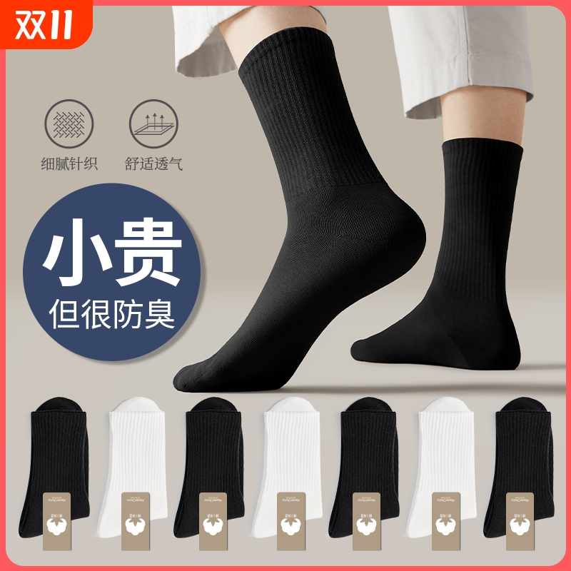 抗菌防臭情侣纯棉秋冬季中长筒袜