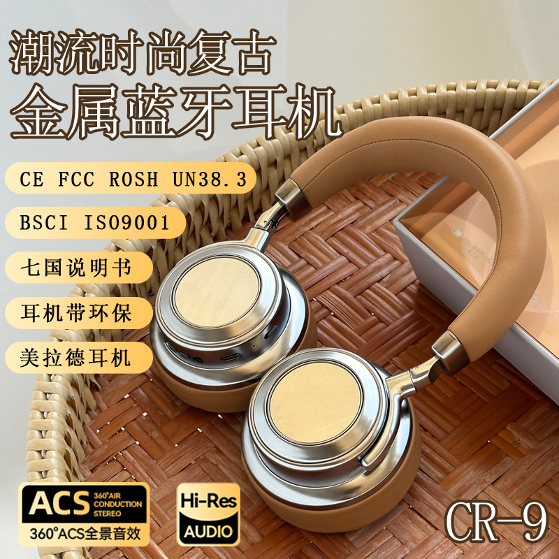 日本品质爆款CR-9复古风金属头戴式无线蓝牙耳机6.0运动时尚穿