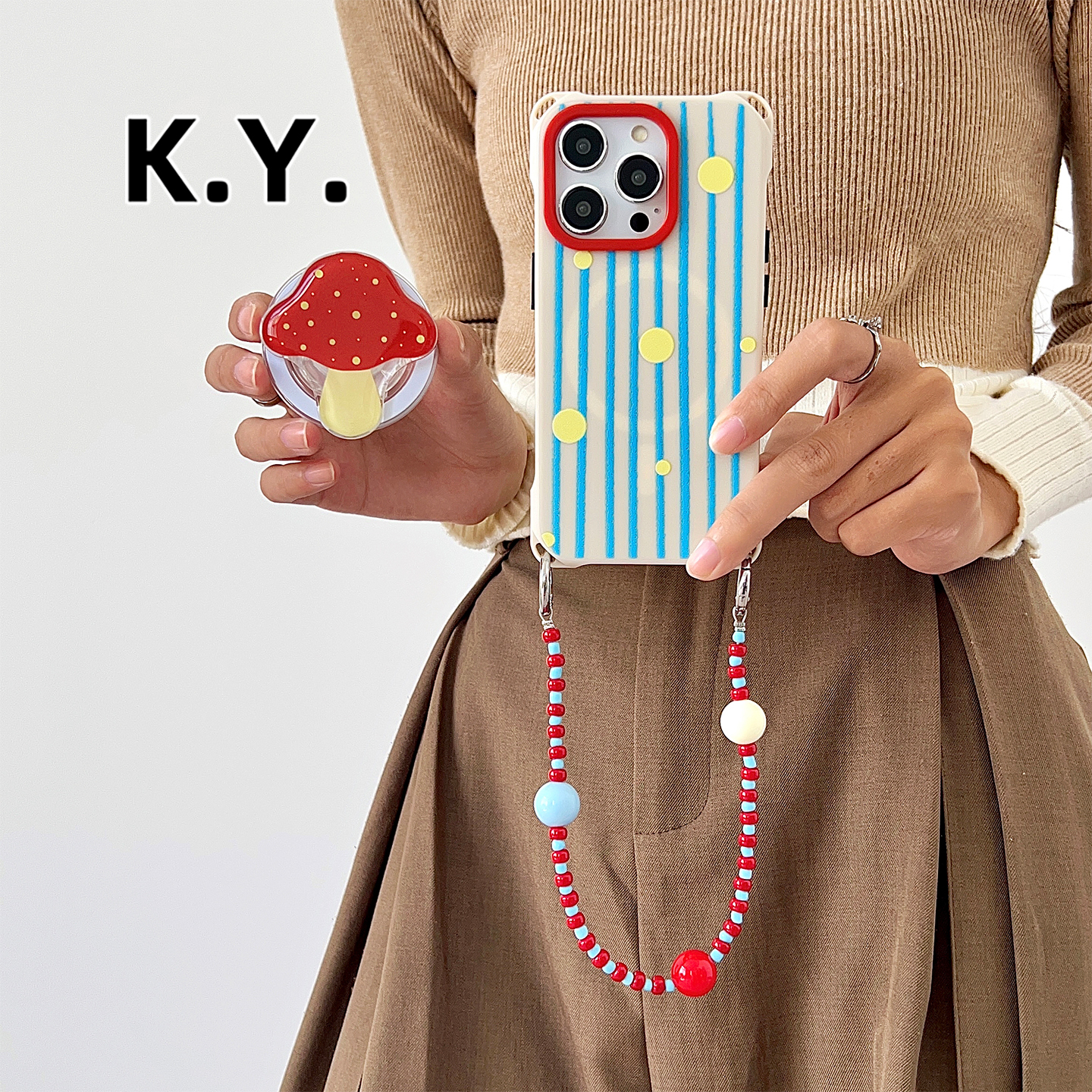 斑点蘑菇磁吸支架手机壳带挂绳适用于苹果17/16Pro四角开孔华