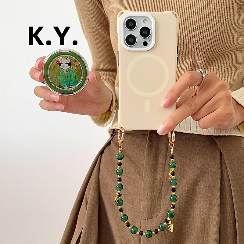 油画猫磁吸支架手机壳带挂绳适用于iPhone15/16pro华为