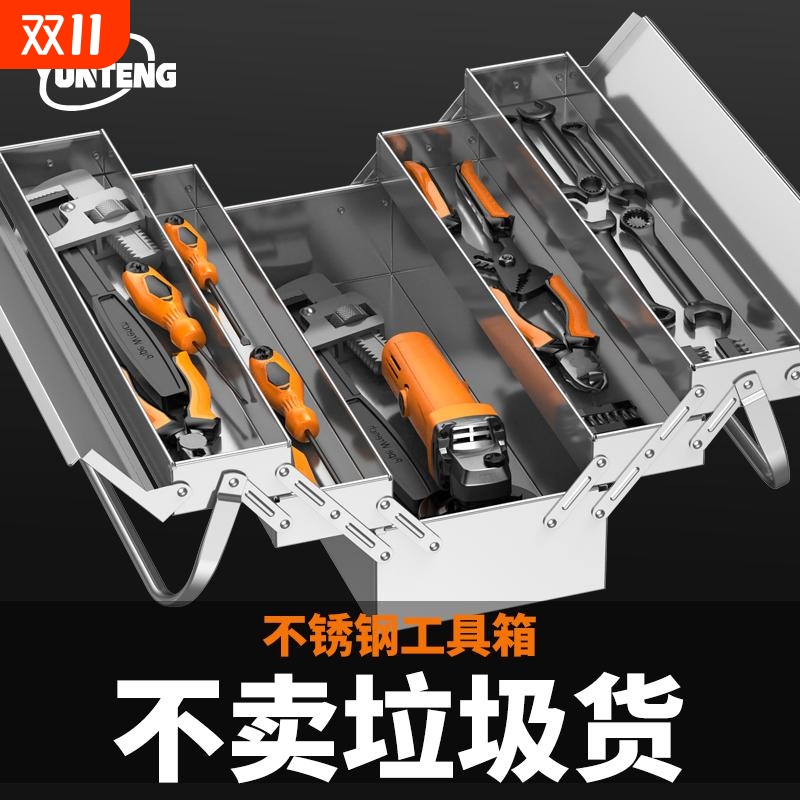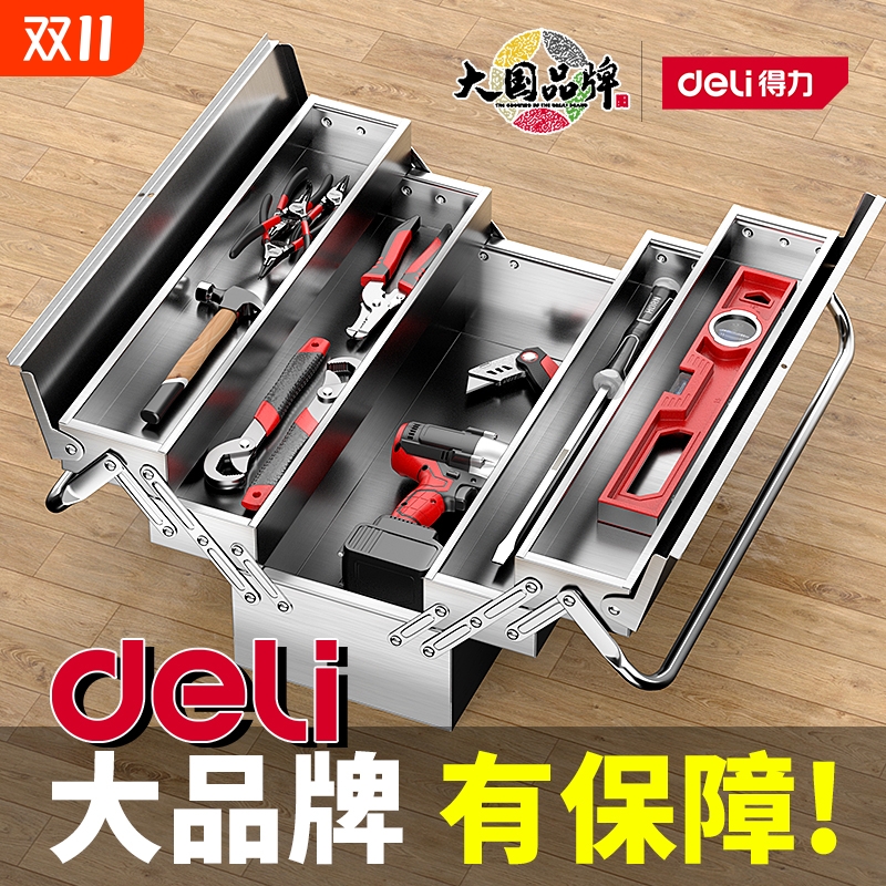 得力不锈钢工具箱多层折叠式手提式五金工具收纳盒专用整理箱分层