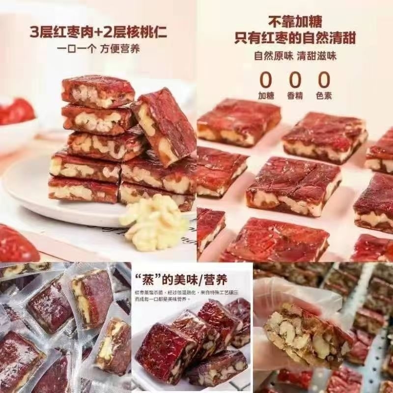 枣夹核桃仁无核红夹心枣仁派真空独立包装休闲零食