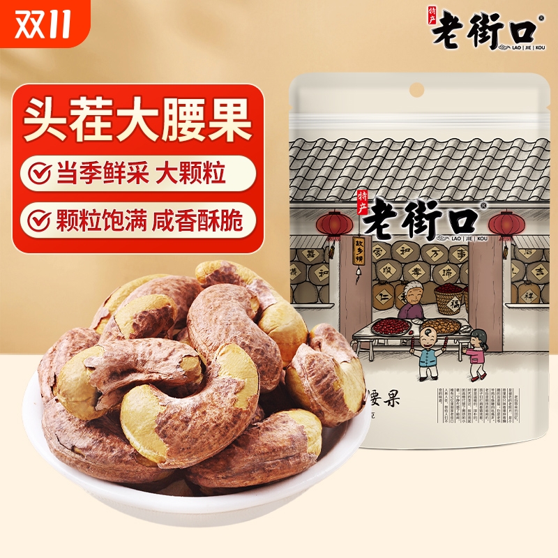 新货带皮大腰果仁坚果500g熟原味盐焗干果紫皮越南特产孕妇零食