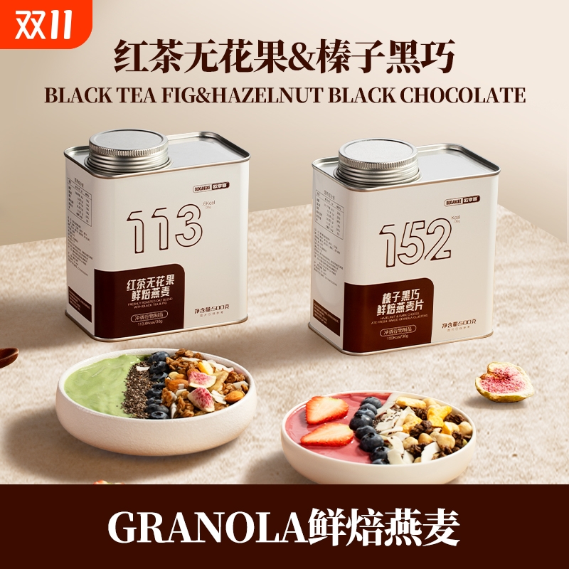 榛子黑巧红茶无花果鲜焙燕麦片格兰诺拉营养早餐即食代餐燕麦脆